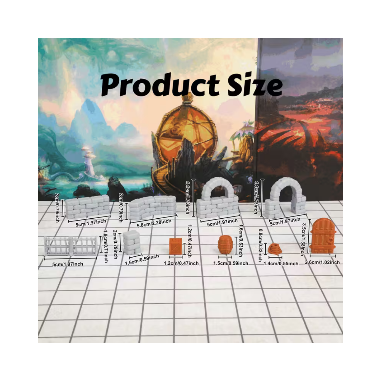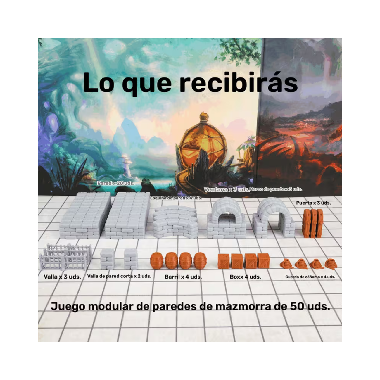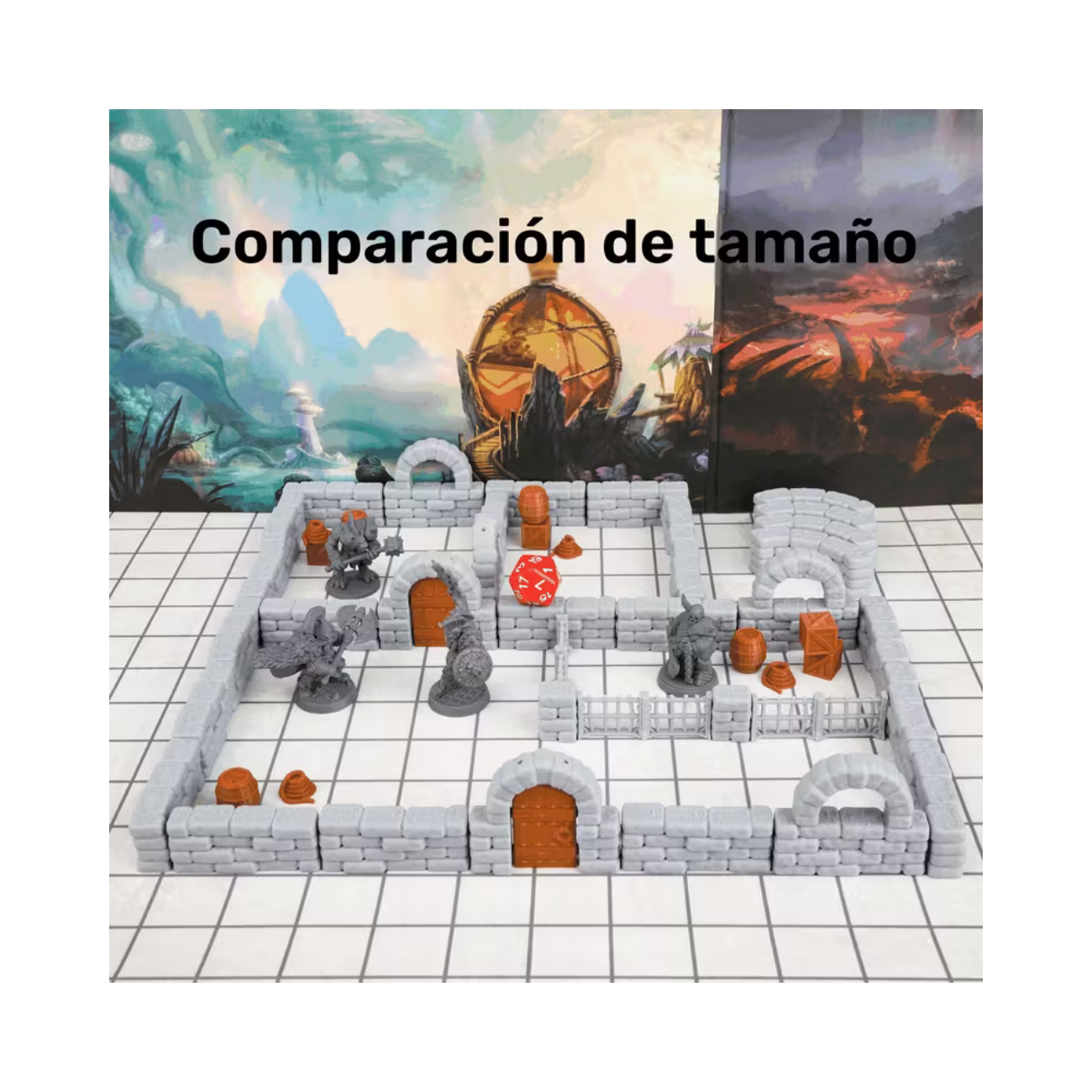 Fabricadas con plástico de alta calidad, estas miniaturas son resistentes al desgaste y están pensadas para soportar un uso continuo a lo largo de tus múltiples campañas. Con acabados detallados y texturas realistas, las paredes y demás elementos capturan la esencia de una auténtica mazmorra medieval, ayudando a los jugadores a sumergirse en la ambientación mientras destacan como piezas estéticas sobre tu tablero de juego.