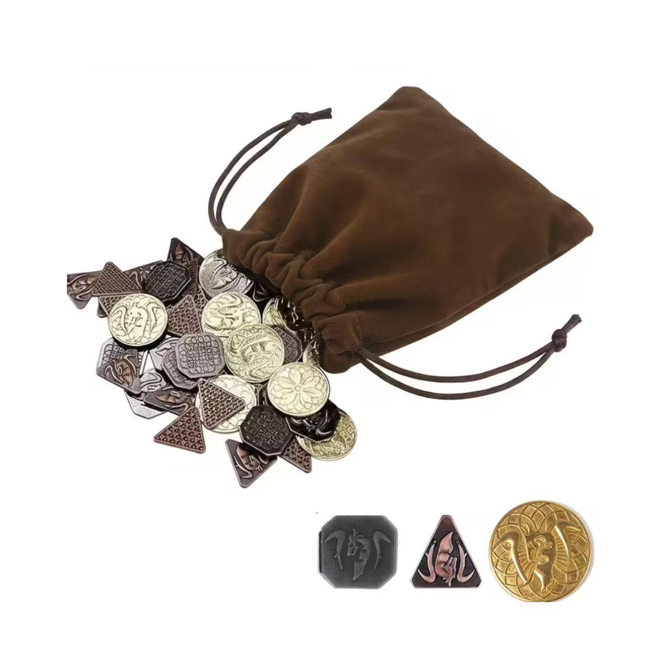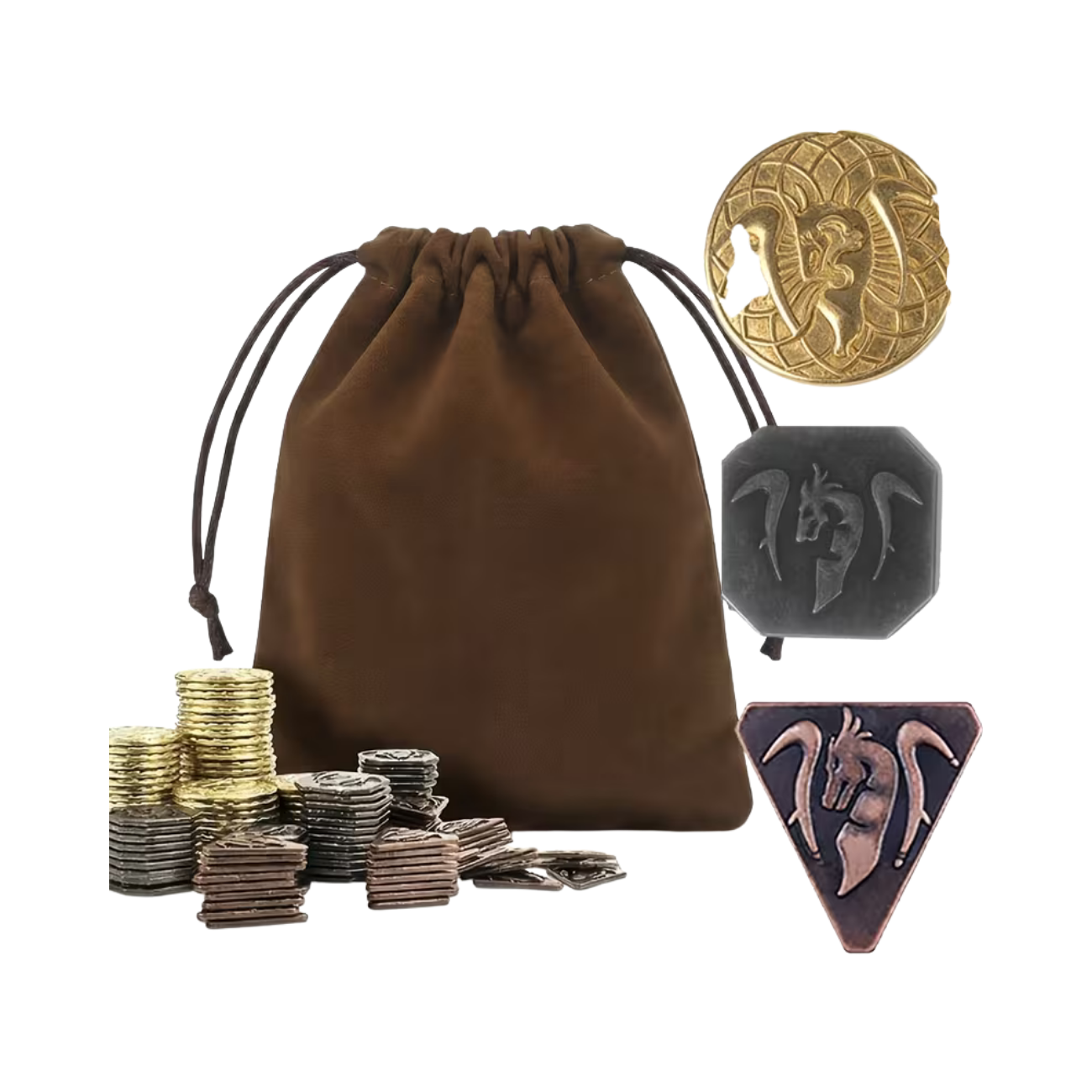 Immerse yourself in the enchanting world of D&D and tabletop RPGs with this exquisite set of Fantasy Coins. These meticulously crafted Game Tokens are designed in a medieval aesthetic, made from durable iron alloy. Perfect for adding authenticity and charm to your campaigns, these coins deliver a genuine sense of treasure, whether you’re a Game Dungeon Master or an avid RPG enthusiast.