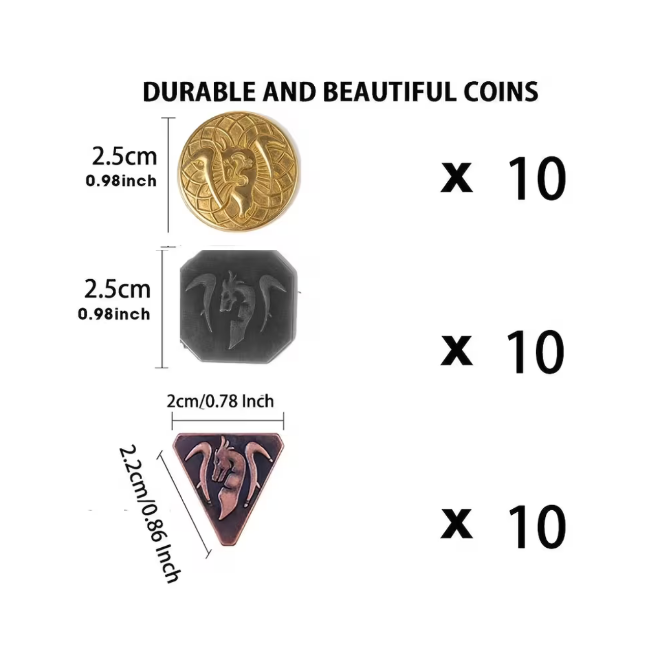 Expertly fashioned in gold, silver, and copper hues, these lead-free coins guarantee both safety and long-lasting quality. Their solid construction from high-grade iron alloy ensures they can withstand countless adventures while maintaining their stunning medieval design. Whether it’s a treasure chest prop or a symbolic gift, these pieces add character and authenticity to your tabletop gaming sessions.